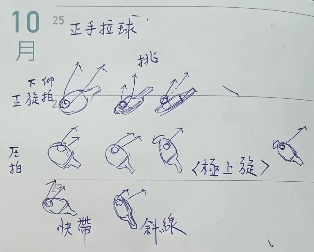 與其這樣,我們不如都先準備好我們比較不擅長的,也就是先準備摩擦球的底部,相信我,如果球變成上旋球過來,你用自然反應很快就可以把版型給調整好了。